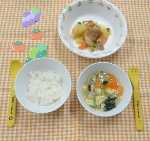 白飯、かきたま汁、肉じゃが