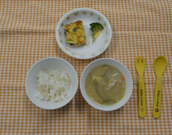 麦ごはん、豚汁、千草焼き、ブロッコリー