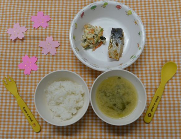 白飯、みそ汁、魚の香味焼き、ほうれん草の白和え
