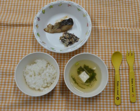 麦ごはん、すまし汁、魚の照り焼き、ひじきの和風サラダ