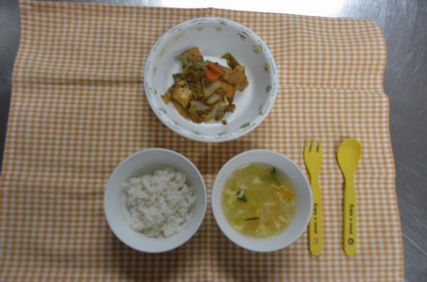 麦ごはん、むらくも汁、厚揚げの回鍋肉