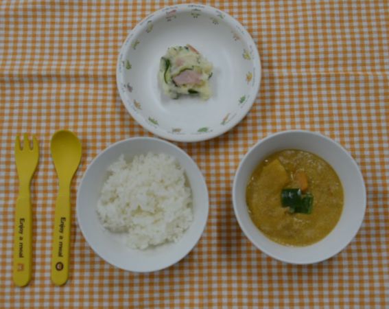白飯、豆カレー、ポテトサラダ