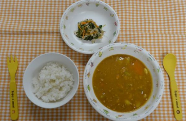 豆カレー、和風サラダ