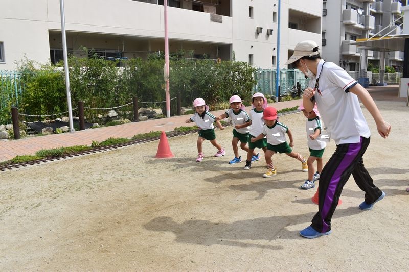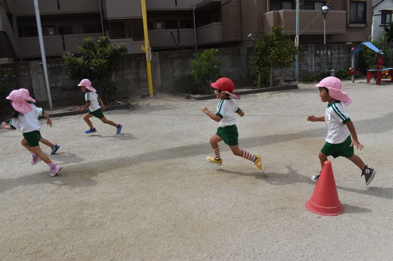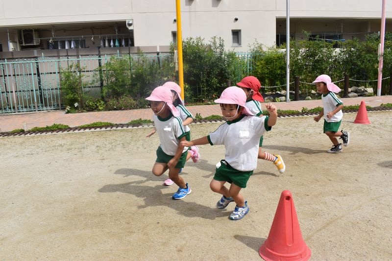 運動会に向けてかけっこの練習をがんばっています!今日も気合充分な年少さんです(^^♪