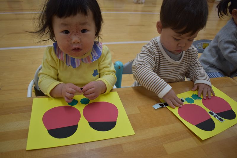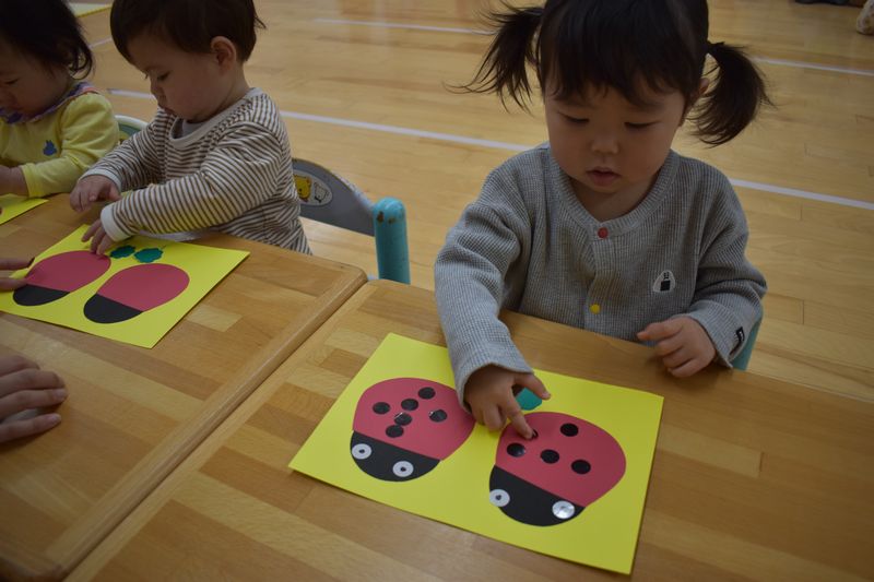 シール貼りの製作をしました!4月からの新しいお友達もお部屋やお友達、先生にもなれてきて活動を楽しめるようになっています(*^-^*)