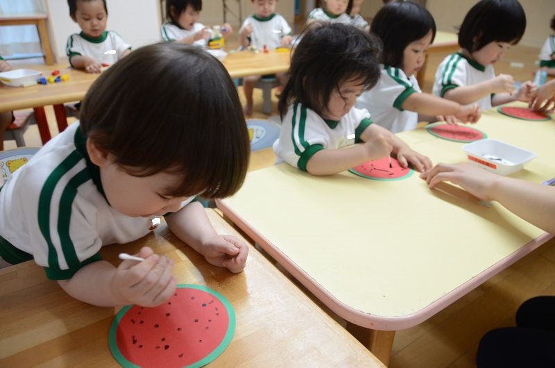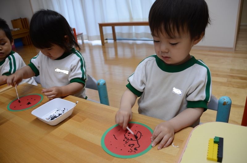 少し早いですが今日は七夕の製作を行いました!綿棒を使ってのスタンプ押しをしましたがみんな上手にすることが出来ました☆彡真剣な顔で製作している姿かっこいいでしょ(^_-)-☆