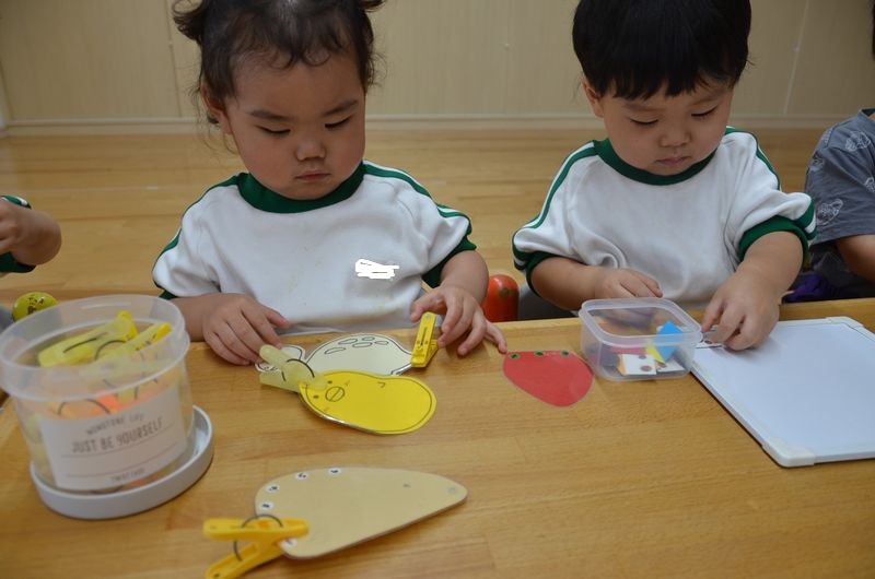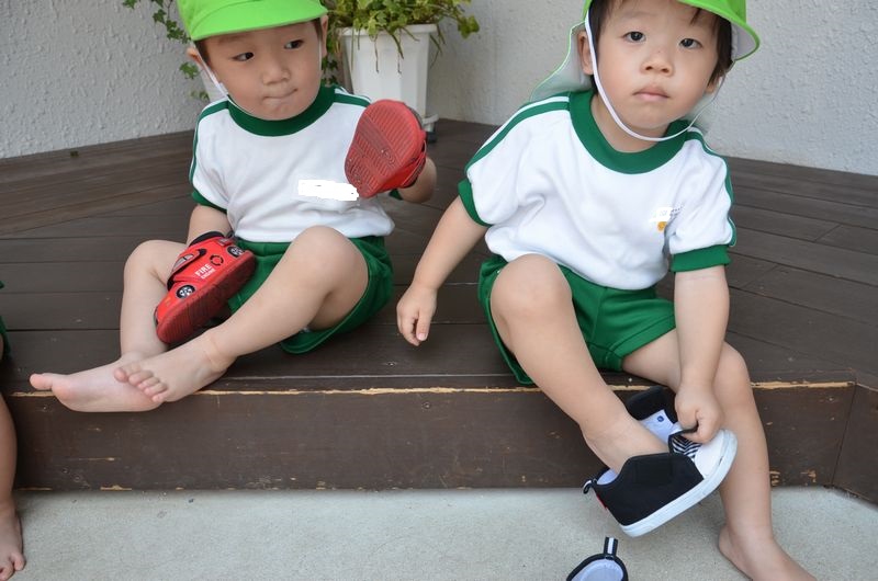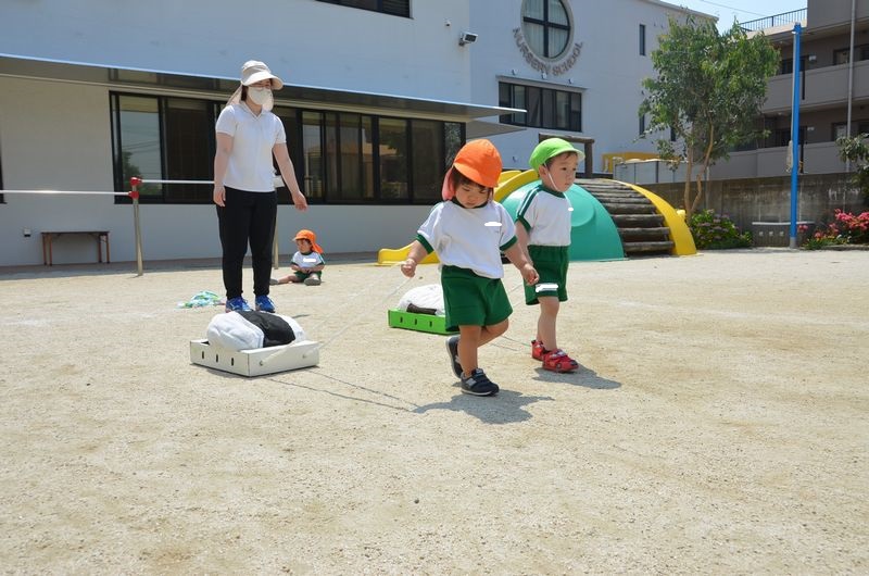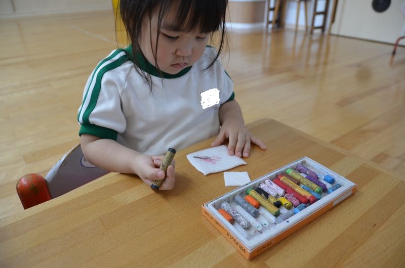 たんぽぽ組では夏の壁面製作で魚・イカ・タコから「どれにする?」と話しながら好きな物を楽しみながら選びました。待つ時間もコーナー活動で指先を使う遊びをして1歳児は2歳児がしている姿をみて真似しようとしています。外では運動会に向けてかけっこやおにぎり運びの練習もがんばってます。1歳児のお友達も自分で靴をはいたり帽子をかぶろうしたりと身の回りの事は出来るようになってきています(*^-^*)