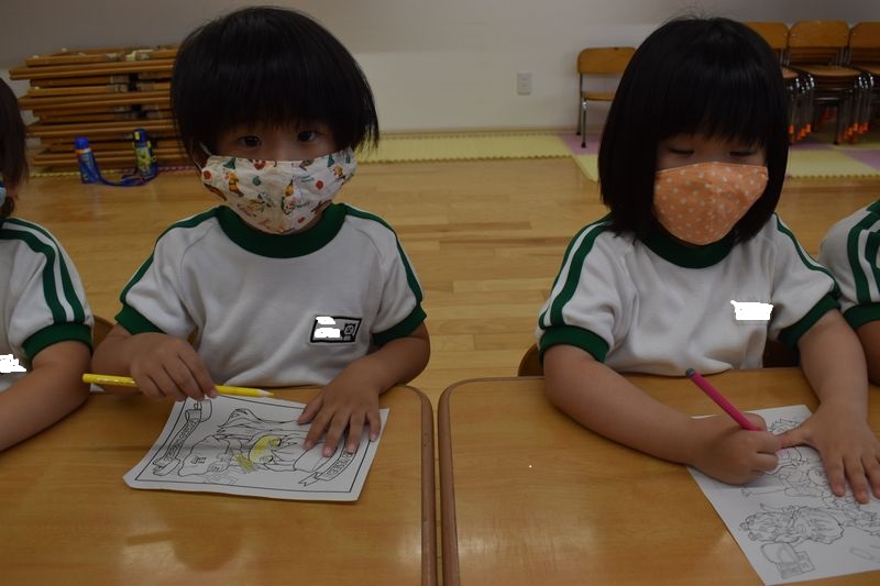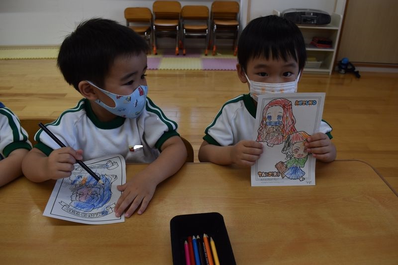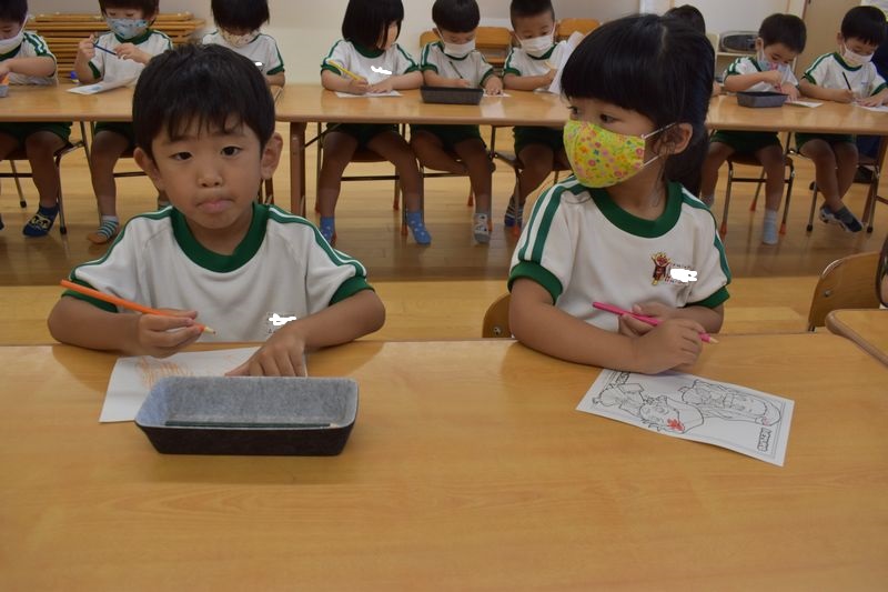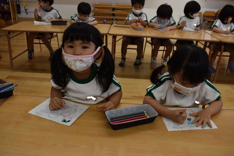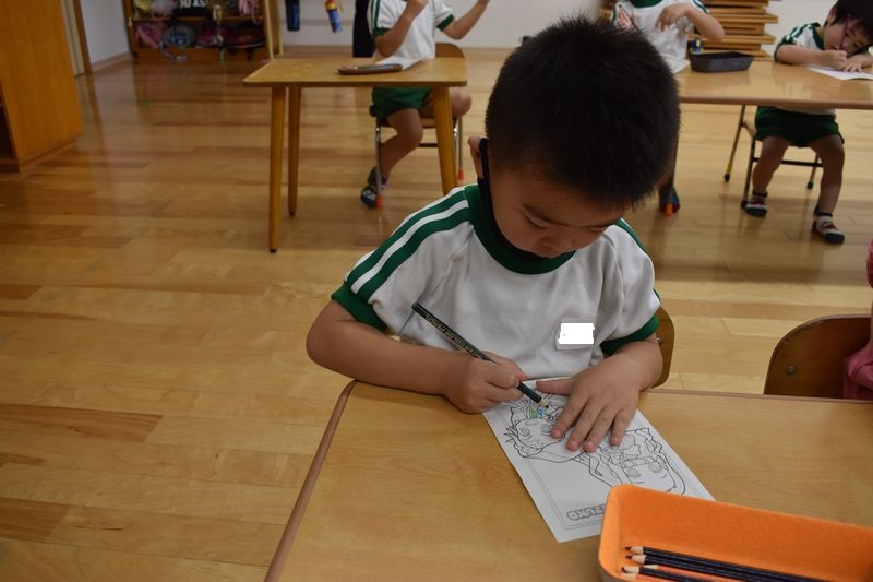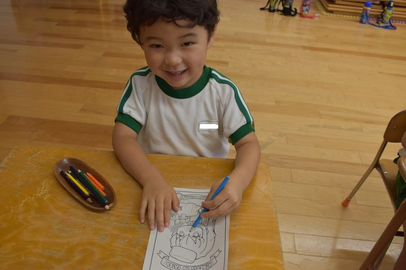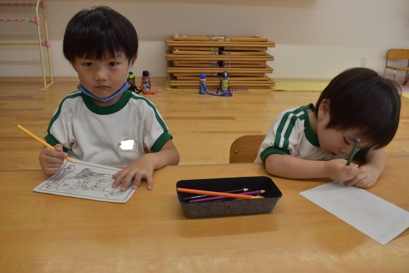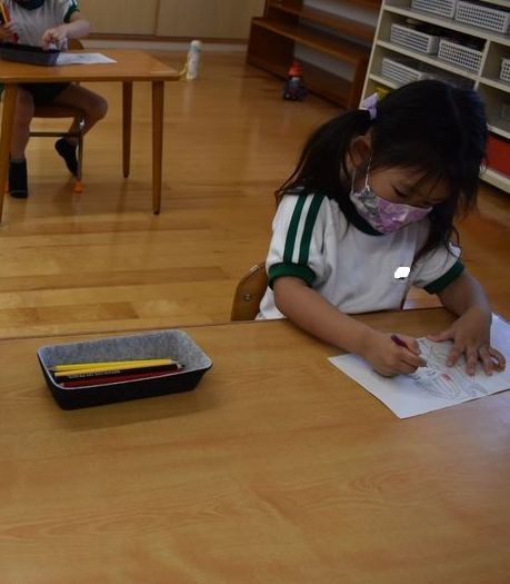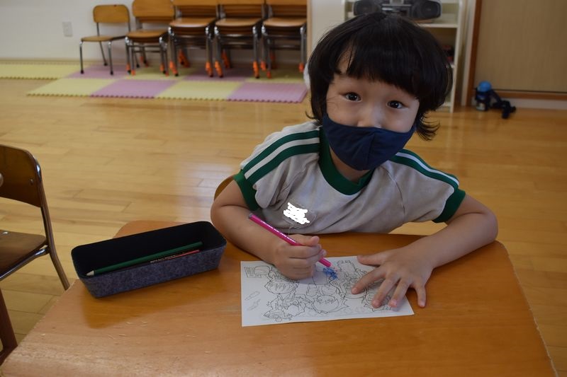色鉛筆を使い始めた3歳児さん!大好きな塗り絵を楽しんでます。だんだんと鉛筆の持ち方も上手になってきました(^^♪