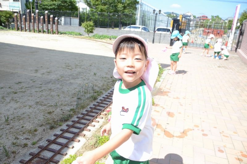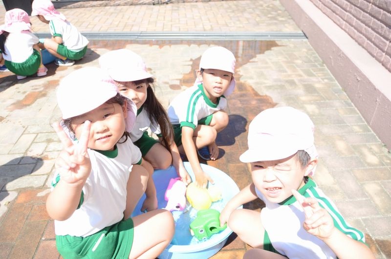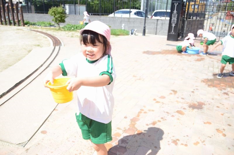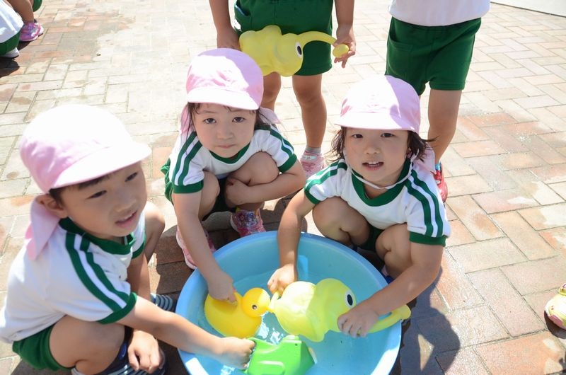 梅雨が明けて園庭のも遮光ネットが張られその下で元気に活動に取り組んでいます。今日はかけっこの前に園庭の草花に水やりを行いました。みんな水やりが大好きで「大きくな~れ」「次はこっちの花に水を上げよう」などと言いながら笑顔はじける4歳児さん達です(*^-^*)