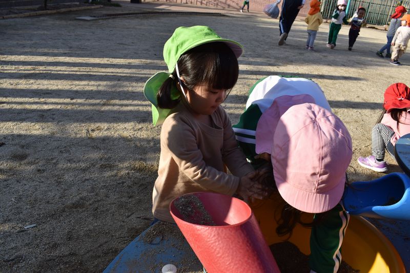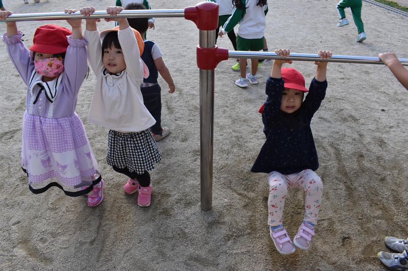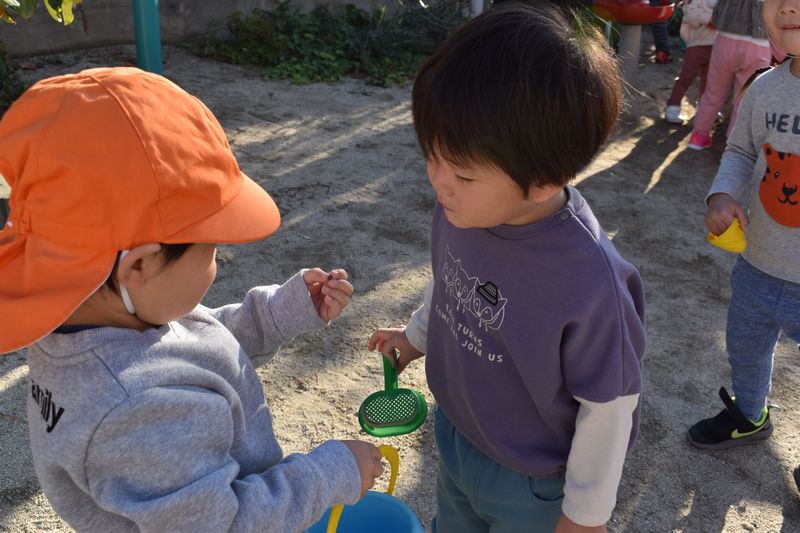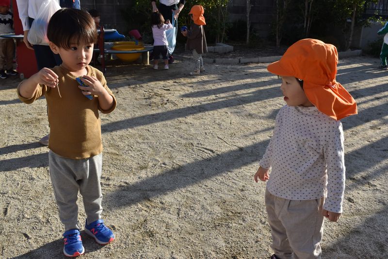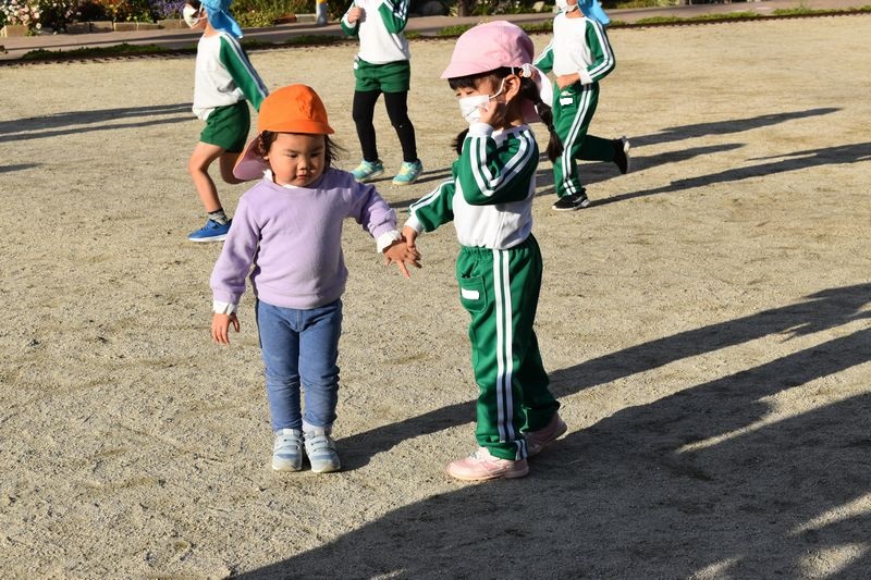 天気の良い日は、外に出て元気いっぱいに遊んでいます。違うクラスの同じ歳や自分より年上のお友達とも仲良く遊んでいます。