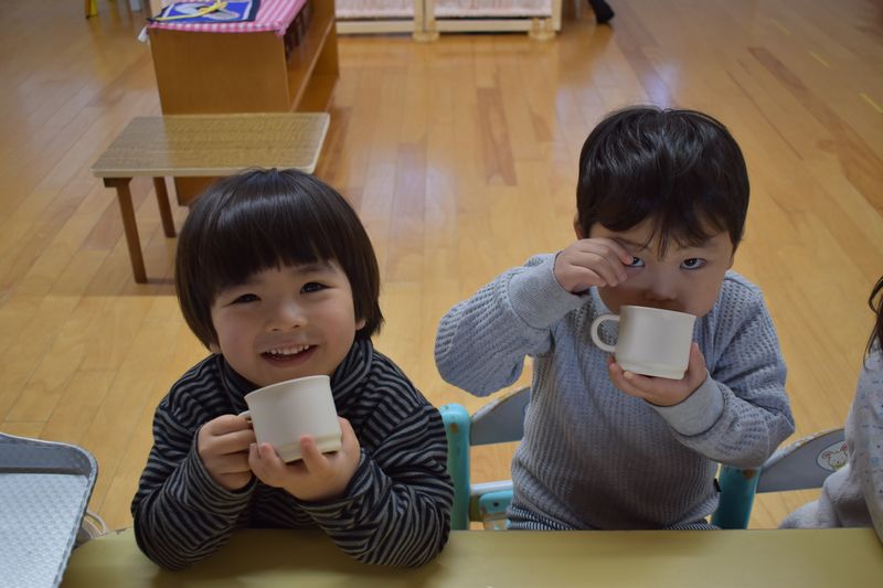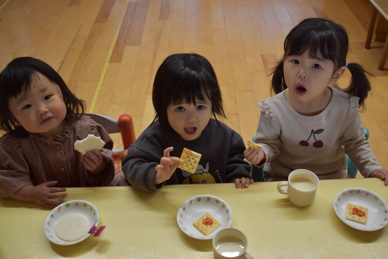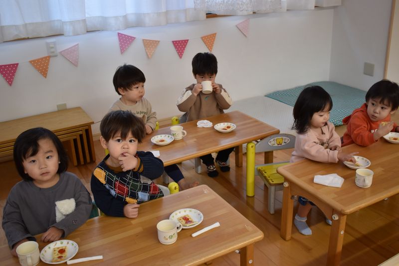お昼寝の後はパジャマから洋服に着替えてからおやつです。おやつを早く食べたいのでお着替えを頑張っているもみじ組さん。頑張った後のおやつはひと味違うかな?(*^-^*)