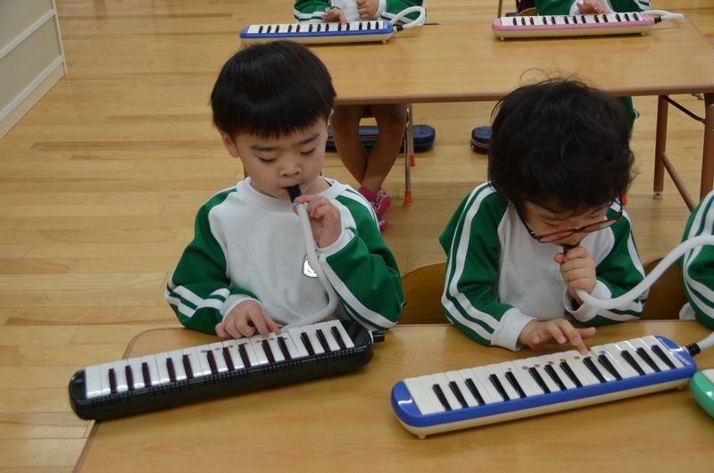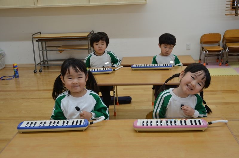 12月からメロディオンの練習を本格的に始めました。最初は息を吹き込んで音を出すことも難しくて、指の使い方にも苦戦していましたが、少しずつ音をしっかり出せるようになってピアノに合わせて演奏することが楽しくなったようです(*^-^*)みんなで気持ちを合わせて音を出すことが出来るようになって子どもたちも自信につながっているようです。色んな事に挑戦にて欲しいと思います(^^ ♪