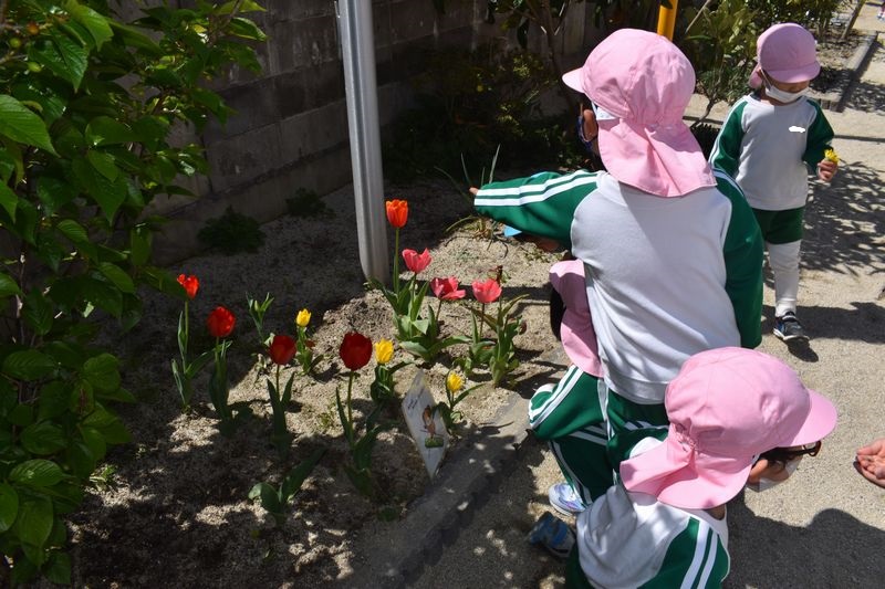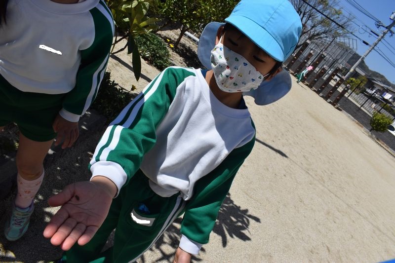 新年度も始まり、雨の日以外はクラス全員で外に出て元気いっぱい遊んでいます!かけっこや鬼ごっこなどをしたり鉄棒で逆上がりのれんしゅうをしたりと楽しんでいます。園庭に咲いてる花を観察したりミミズやダンゴムシを見つけて店に来てくれます。3歳児さんたちもクラスに慣れ4・5歳児さんに混ざって仲良く遊んでいます(*^-^*)