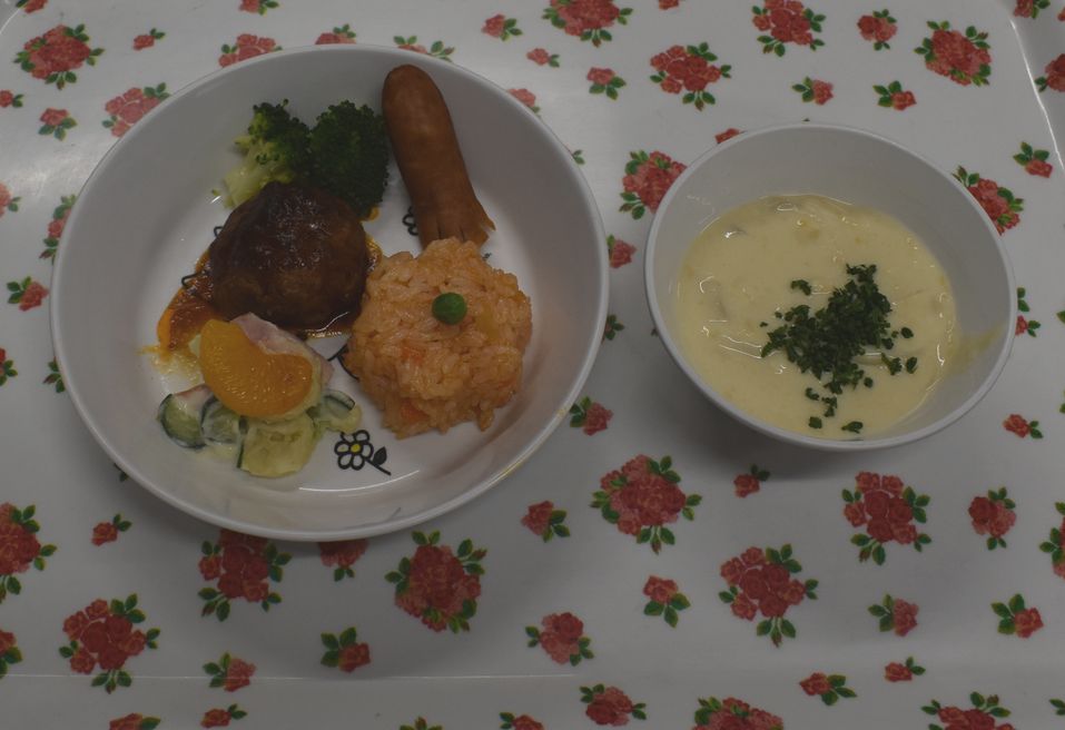 今日は誕生会なのでお楽しみメニューでした。みんなの大好きなメニューばかりで残さず食べました。