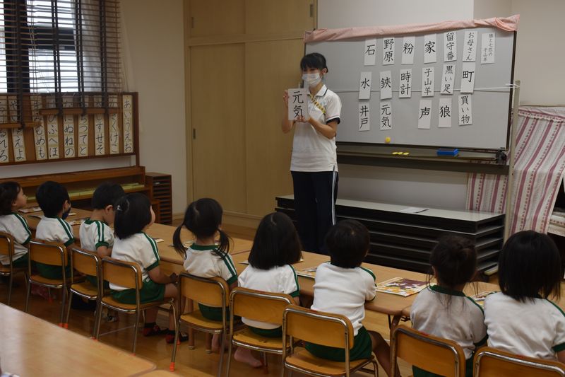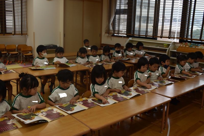 その後はみんなで漢字絵本を読みました。9月の漢字絵本は「狼と七匹の子山羊」です。物語に出てくる漢字で簡単なものは読めるようになってきています!!