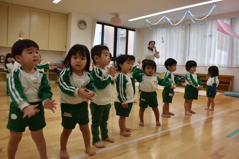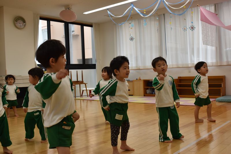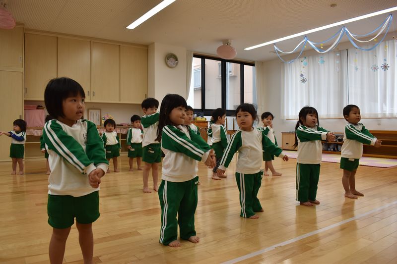 2月の保育参観で保護者の方々に見てもらおうとダンスの練習をしています。「パプリカ」などの耳慣れた曲で楽しんでいます。