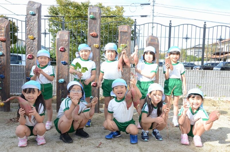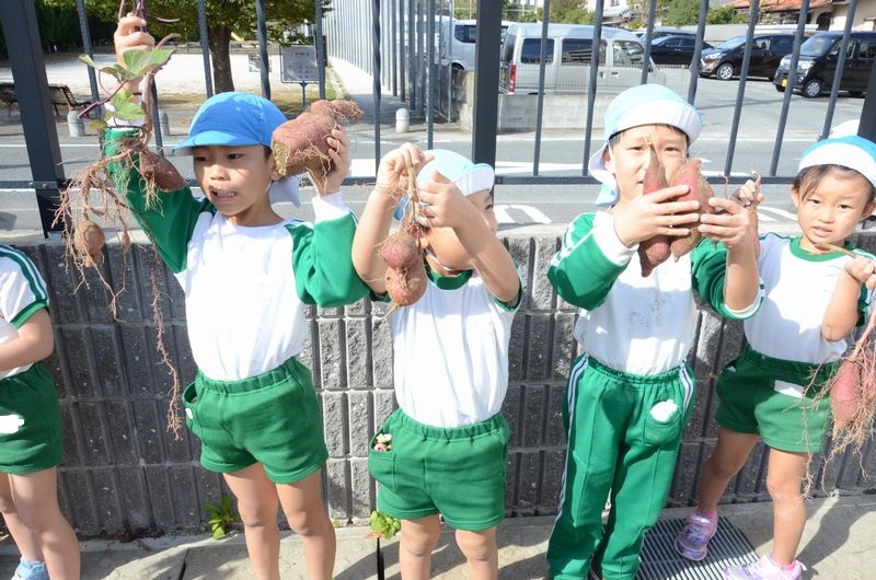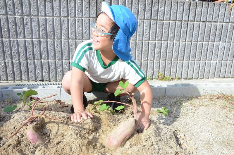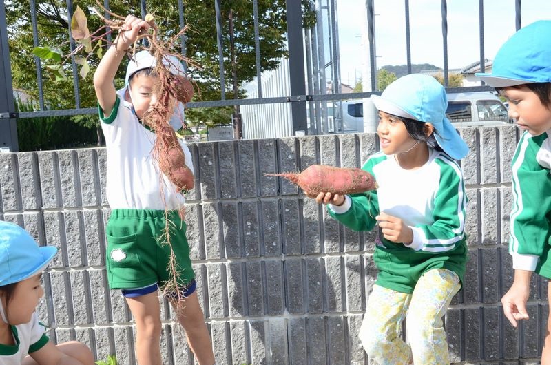 園庭の畑に植えたさつまいもの芋掘りを本日しました!予想以上に大きく「大きい~!」「とれた~!」と子供たちの喜ぶ声と楽しそうな姿がありました!(^^)!今年はコロナで行事ごとが少ない中、年長さんの思い出がまた一つ増えました。