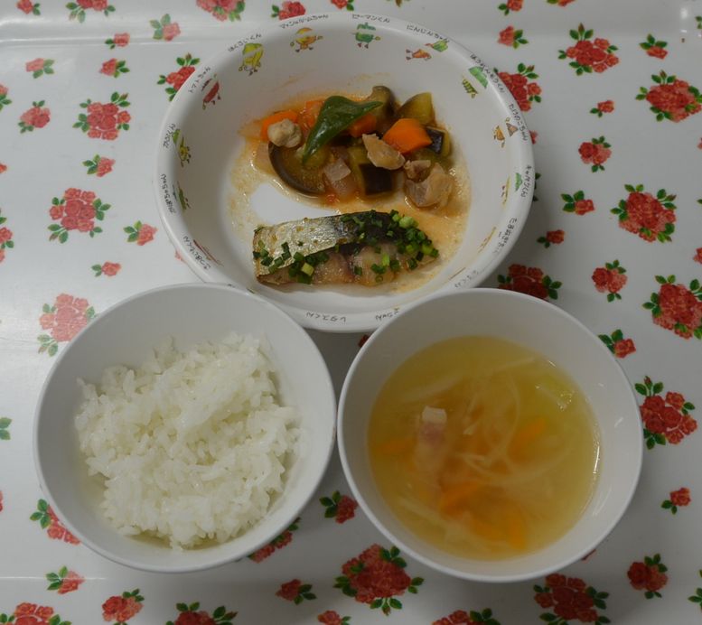 白飯、野菜スープ、魚の香味焼き、ラタトゥユ