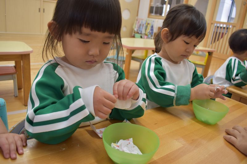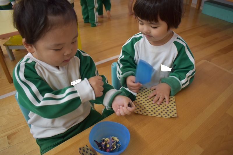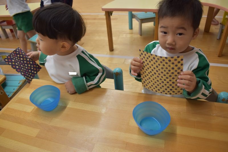 今日は、折り紙に触れて見ました!!お兄さんやお姉さんが遊んでいる折り紙に触れてとても楽しそうでした (^^)/