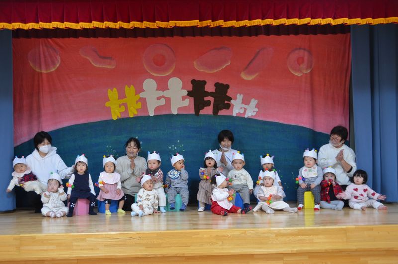 今日は発表会に向けて最後の合同練習でした。みんな本番の衣装に着替えやる気満々でした!0歳児のお友達も泣かずに楽しく出来ました。各クラス本番に向けて先生たちも園児たちも頑張ってきました。保護者の皆さん本番を楽しみにしていて下さいね(^_-)-☆