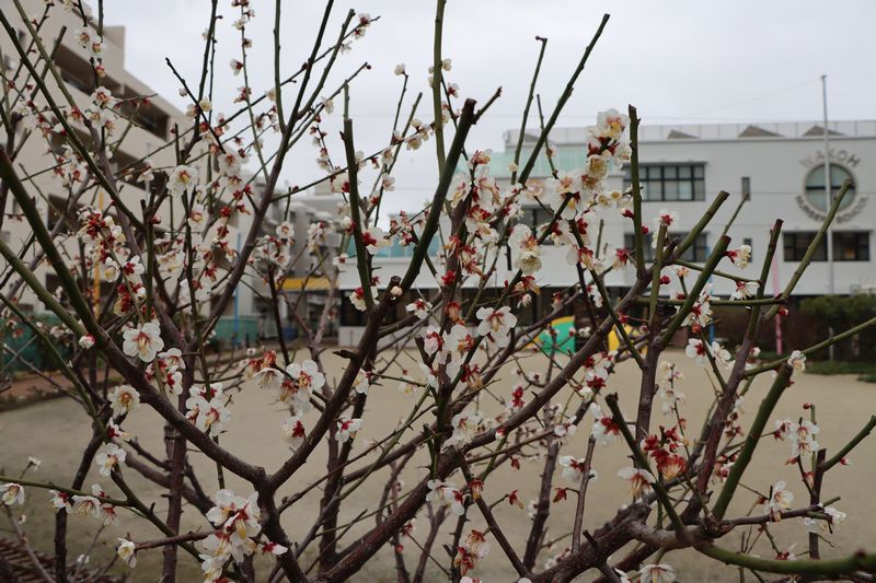 梅の花がただいま満開です!登降園の園児や保護者の方に「きれいですね。」など声をかけていただいてます。日によって寒かったりしますが春はもう近くまできてますね(*^-^*)
