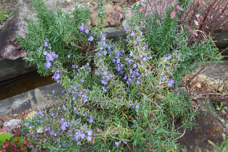 肉料理に使うローズマリーもかわいい紫の花が咲いてます。