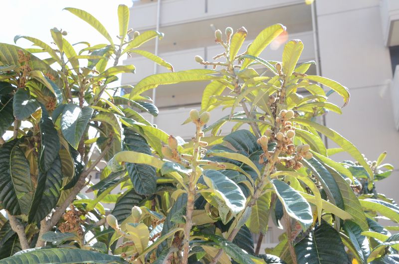 びわの木はびわの赤ちゃんがたくさんです。今年はたくさん実りそうです。