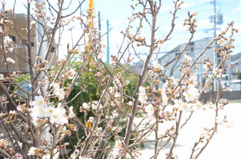 園庭の桜は次々と花が咲き始めました。暖かくなってきたので満開まであっという間になりそうです。