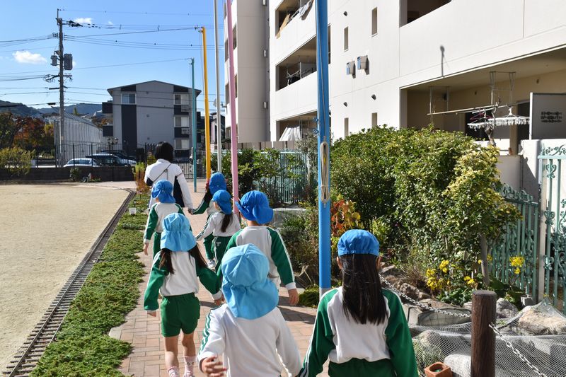いい天気です。お友達と手をつないでシュッパーツ!!