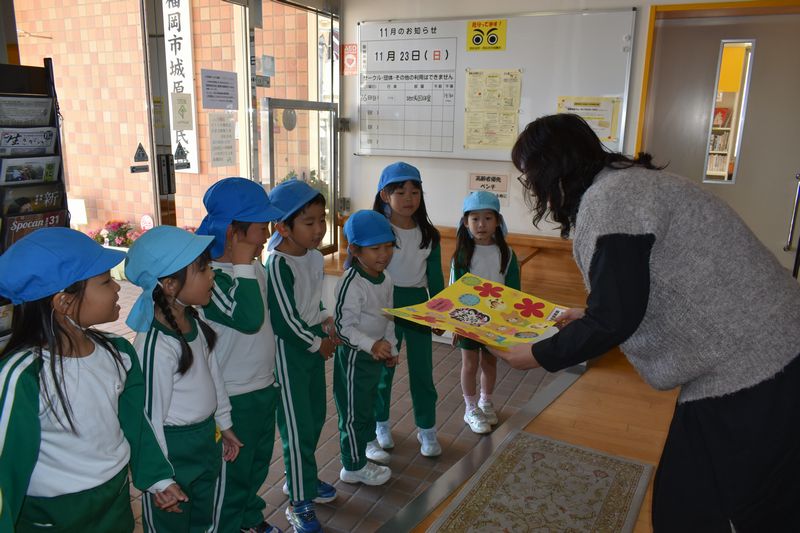 勤労感謝のお手紙を地域の病院や公民館などに持っていきました。子どもたちの手紙や絵をつけて素敵な贈り物が出来ました(^o^)丿