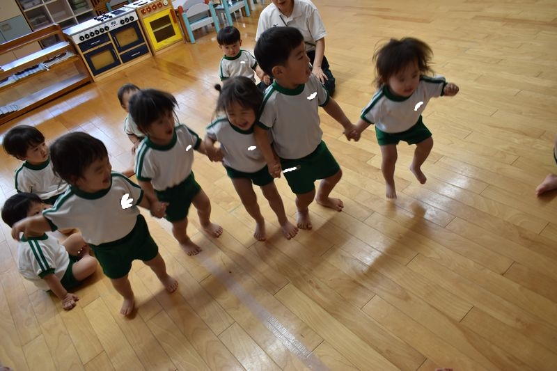 そのあとはみんなで一緒にゲームをしてあそびました。手をつないでジャンプしたりとっても楽しいのは子どもたちの笑顔に癒される毎日です。ジャンプもとても上手になりました。