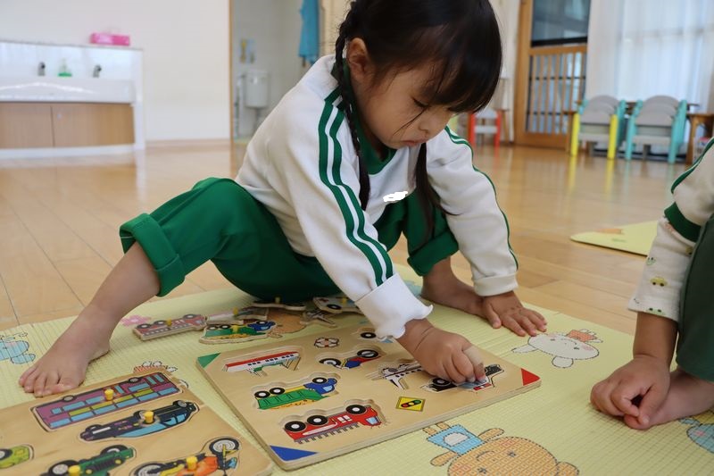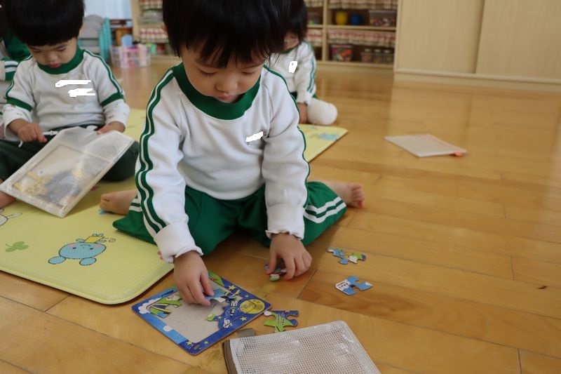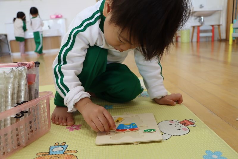 パズルでは、難しそうにしながら・・でも、熱心に集中して「ねえ、みて!」「これであってる?」と先生に話しかけながら取り組んでいました(*^-^*)
