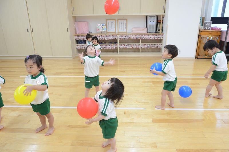 今日は子ども達の大好きな遊びをしたもみじ組さん。手遊び・ぽっくり・風船遊びなどをしました。お片付けの時間になったら「まだ、したい!」と泣いちゃうくらい楽しみました。また、遊ぼうね(*^-^*)