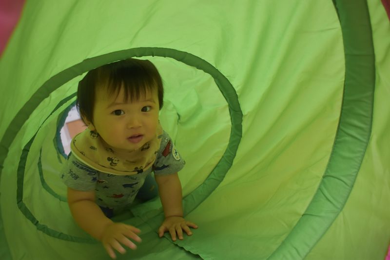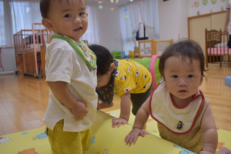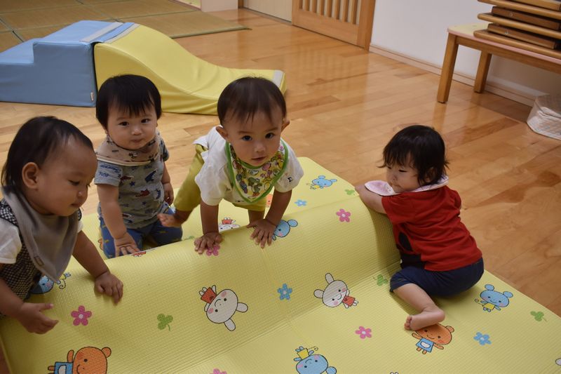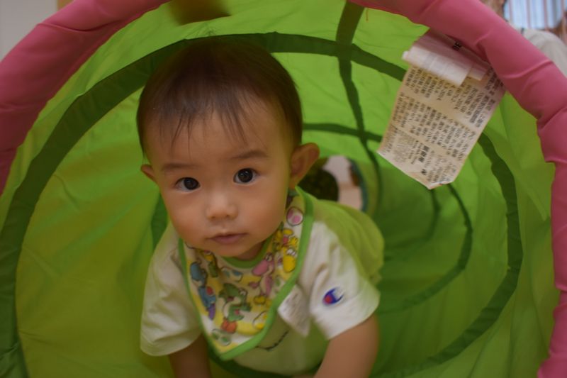 つぼみ組さんの最近のブームはトンネルくぐりです。トンネルを準備しているとみんな急いで集合します。トンネルくぐりやマット運動は体幹を鍛えるのにいいのでみんな楽しみながら鍛えています(^^♪