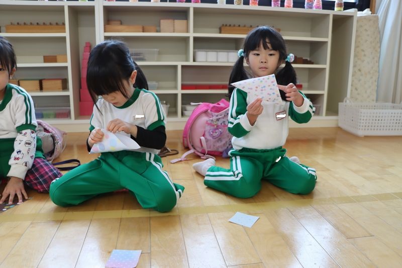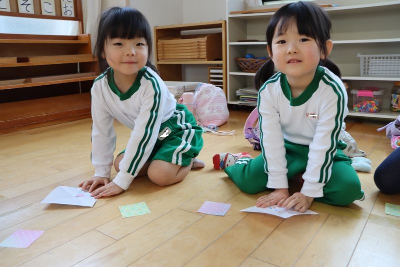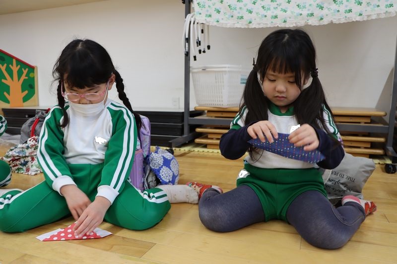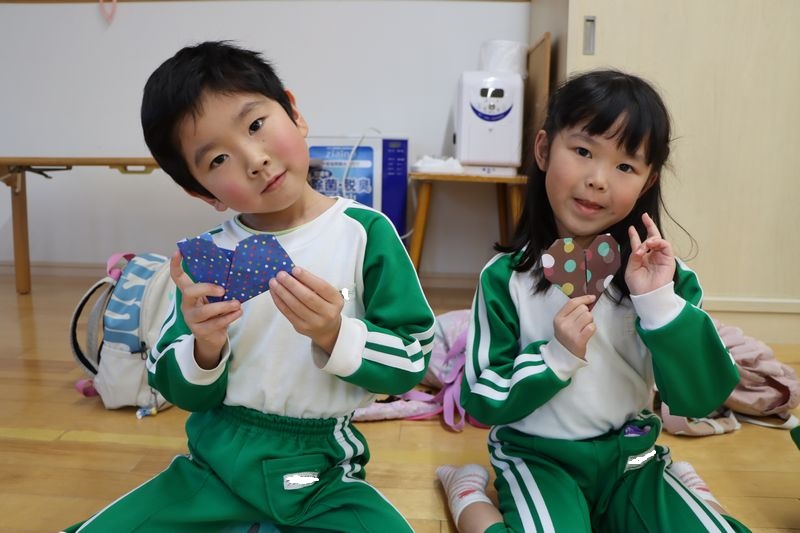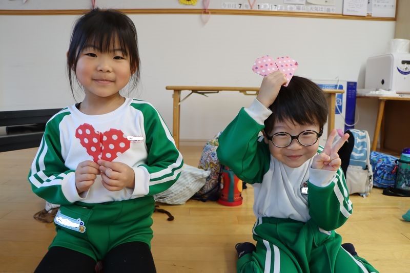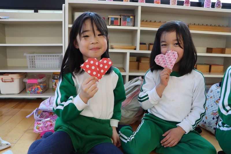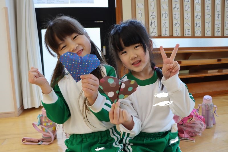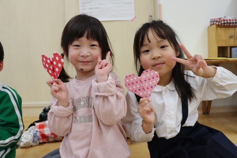 バレンタインが近づいてきましたね(*^-^*)4歳児さんは作品展に向けていろいろな製作や音楽発表会に向けてメロディオンの練習などがんばっています(^^♪折り紙もどんどん上達して年下のお友だちに作ってあげたりしています。今回はハートに挑戦!「出来る!」「これであってる?」などと言いながらノリノリで作りました。とっても可愛いハートがたくさん出来ました。真剣な表情(*_*)や作ったハートとにっこりスマイル(*'▽')どうですか?
